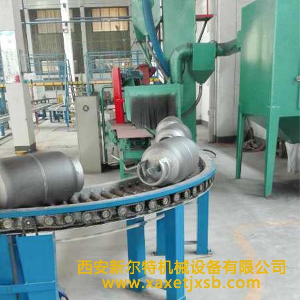 钢瓶式抛丸清理机是一种组合清理钢管内外壁的清理机,通过抛丸来清理钢管的外表面,通过抛喷丸清理内表面,使表面的氧化皮均祛除掉。钢管抛丸清理机主要利用高效强力抛丸器抛出的高速丸流,抛打位于室体内的旋转工件表面与内腔上,去掉其它的粘砂、锈层、焊渣、氧化皮及其杂物,使之获得精细的光洁表面。提高了漆膜与钢材表面的附着力,并提高钢材的抗疲劳强度和抗腐蚀能力,改善了钢材的内在质量,延长其使用寿命。